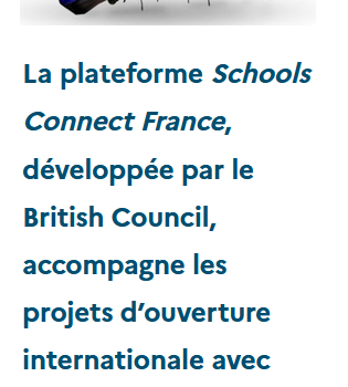 Good news ! Le British Council travaille avec un large réseau d’écoles et d’établissements en France et au Royaume-Uni en mettant à leur disposition, dans le cadre de projets, des ressources et outils numériques. Il facilite la mise en relation des systèmes éducatifs, apporte son expertise et innove au bénéfice […]