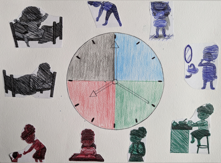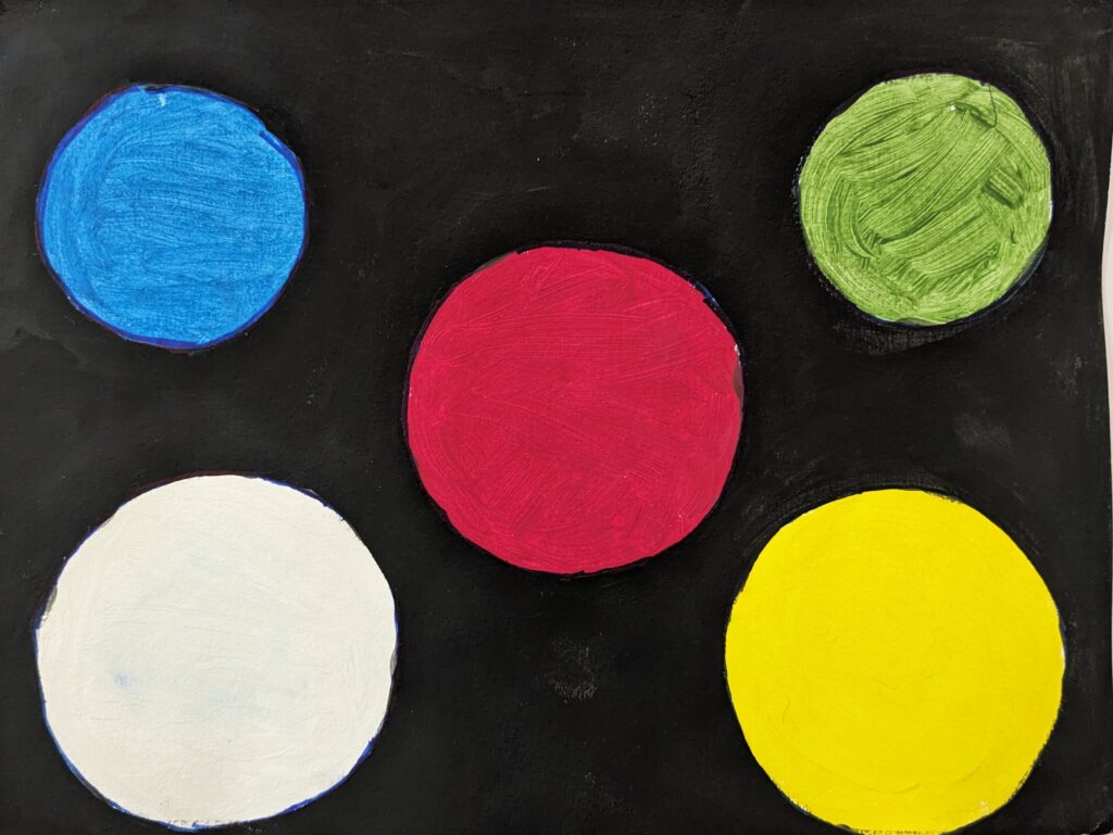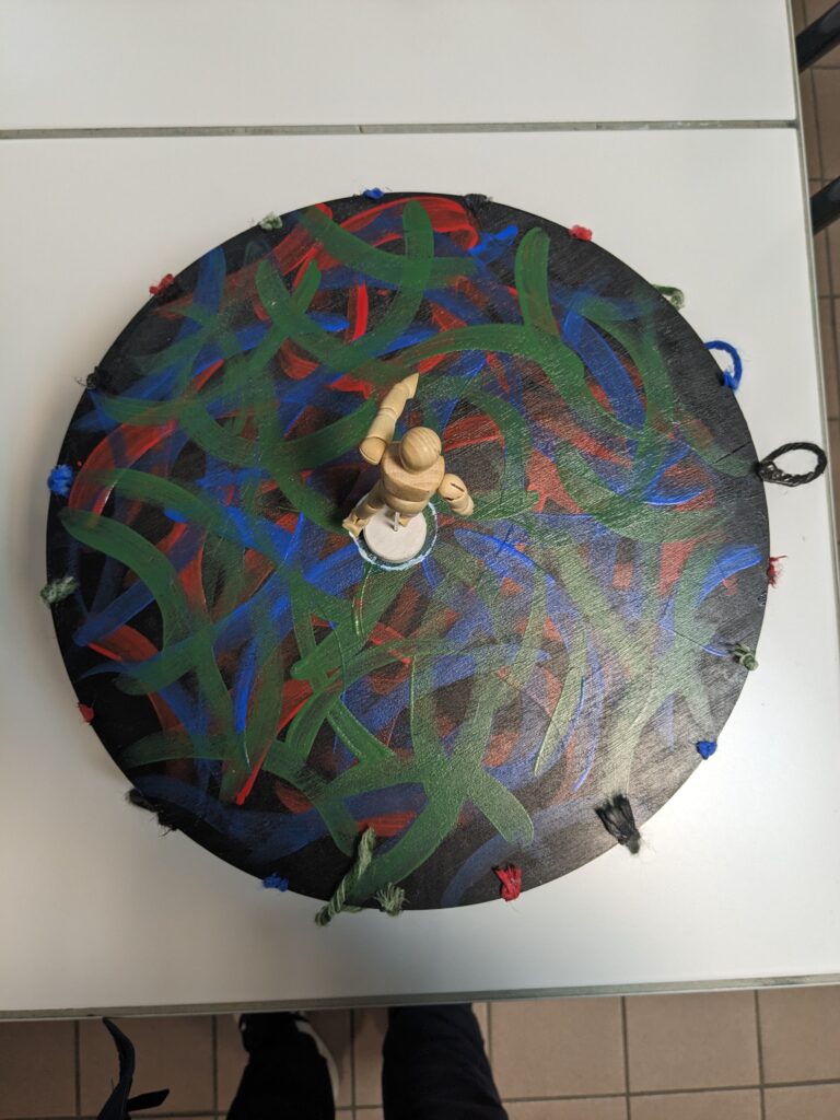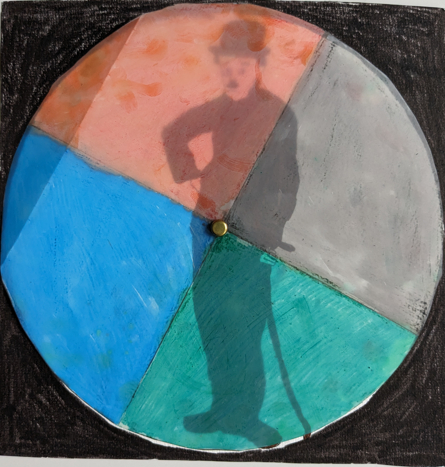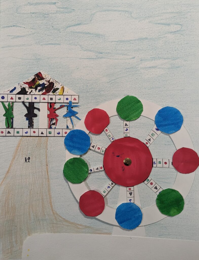 Mon travail est un diaporama. Mon travail à rapport avec le 4 couleurs avec les 4 couleurs des disques l’extrait de film avec la répétition et le compas avec la rondeur des disques.