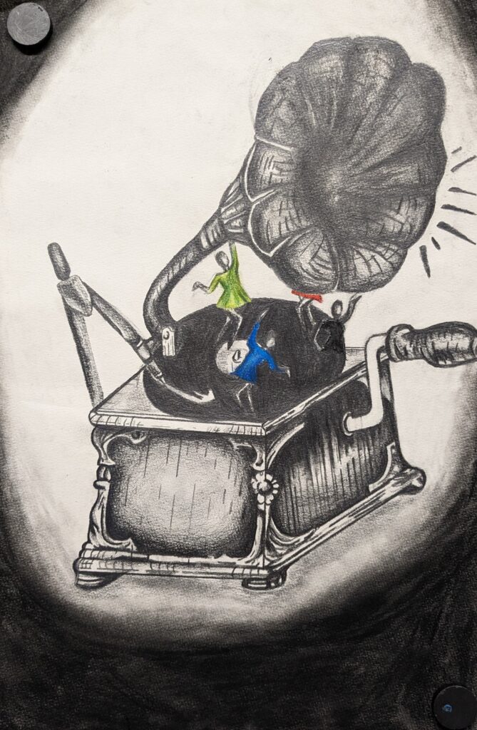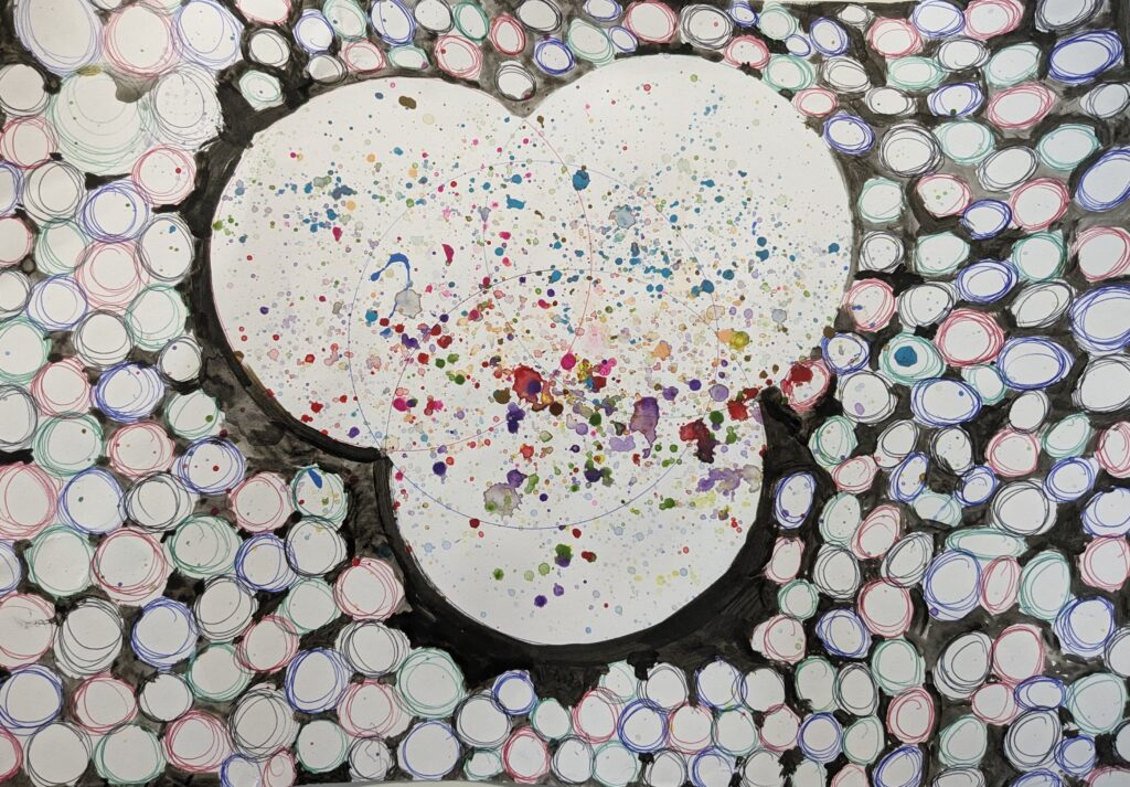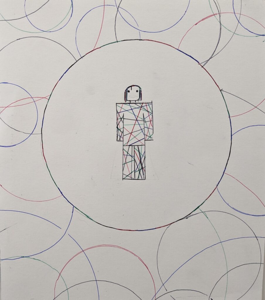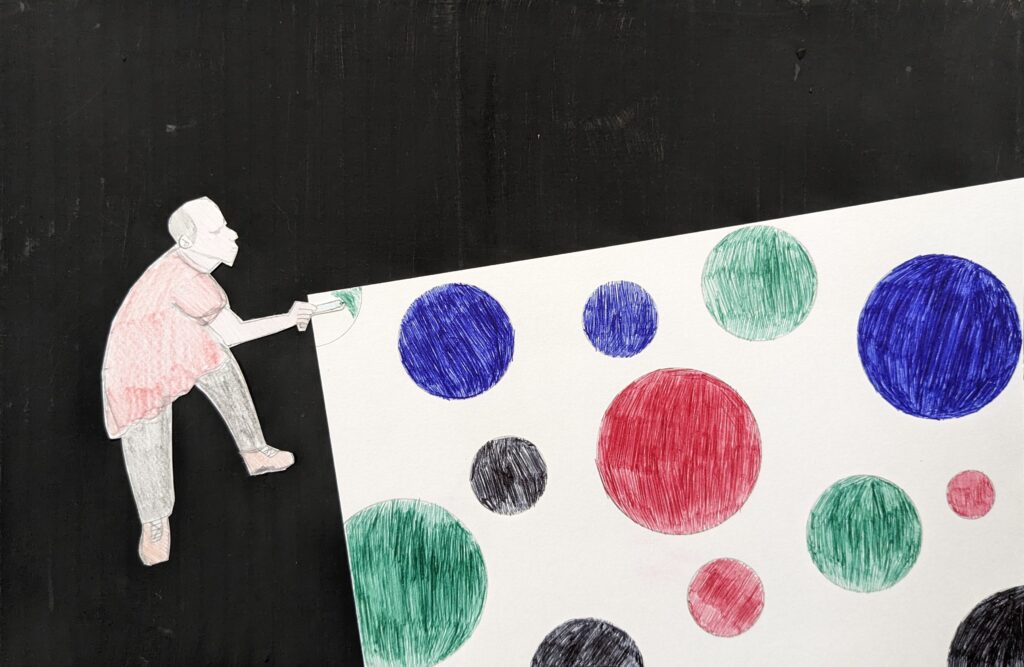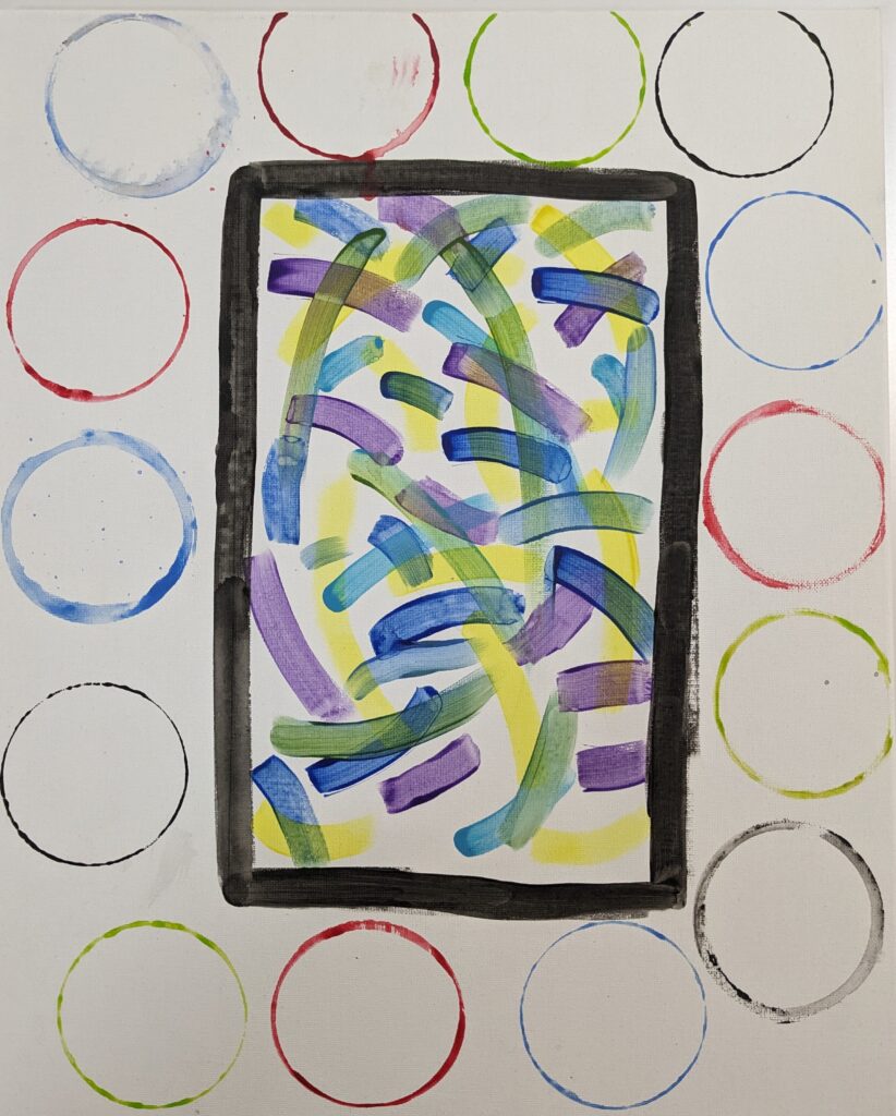 Mon travail est un diaporama. Mon travail à rapport avec le 4 couleurs avec les 4 couleurs des disques l’extrait de film avec la répétition et le compas avec la rondeur des disques.