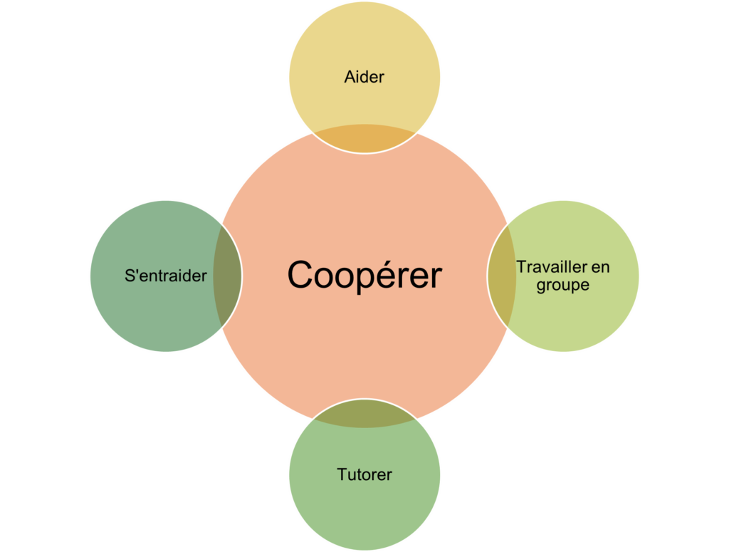 Aider : un élève apporte de l’aide à un autre qui en a besoin. L’élève se reconnaît compétent pour apporter une aide particulière.
