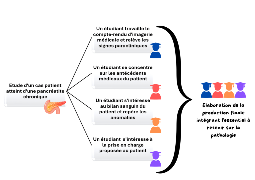 Une démarche coopérative implique que chaque élève assure une mission dont l’accomplissement permettra une mise en commun finale qui peut s’illustrer par la réalisation d’une carte mentale, d’un schéma bilan, d’un quiz numérique… Le travail de chaque étudiant est indispensable à la réalisation finale.