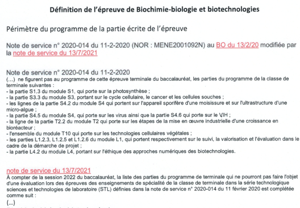 Documents modifiés prenant en compte les parties des programmes ne faisant pas l’objet d’une évaluation en mars (exemptions de 2021 et 2022).