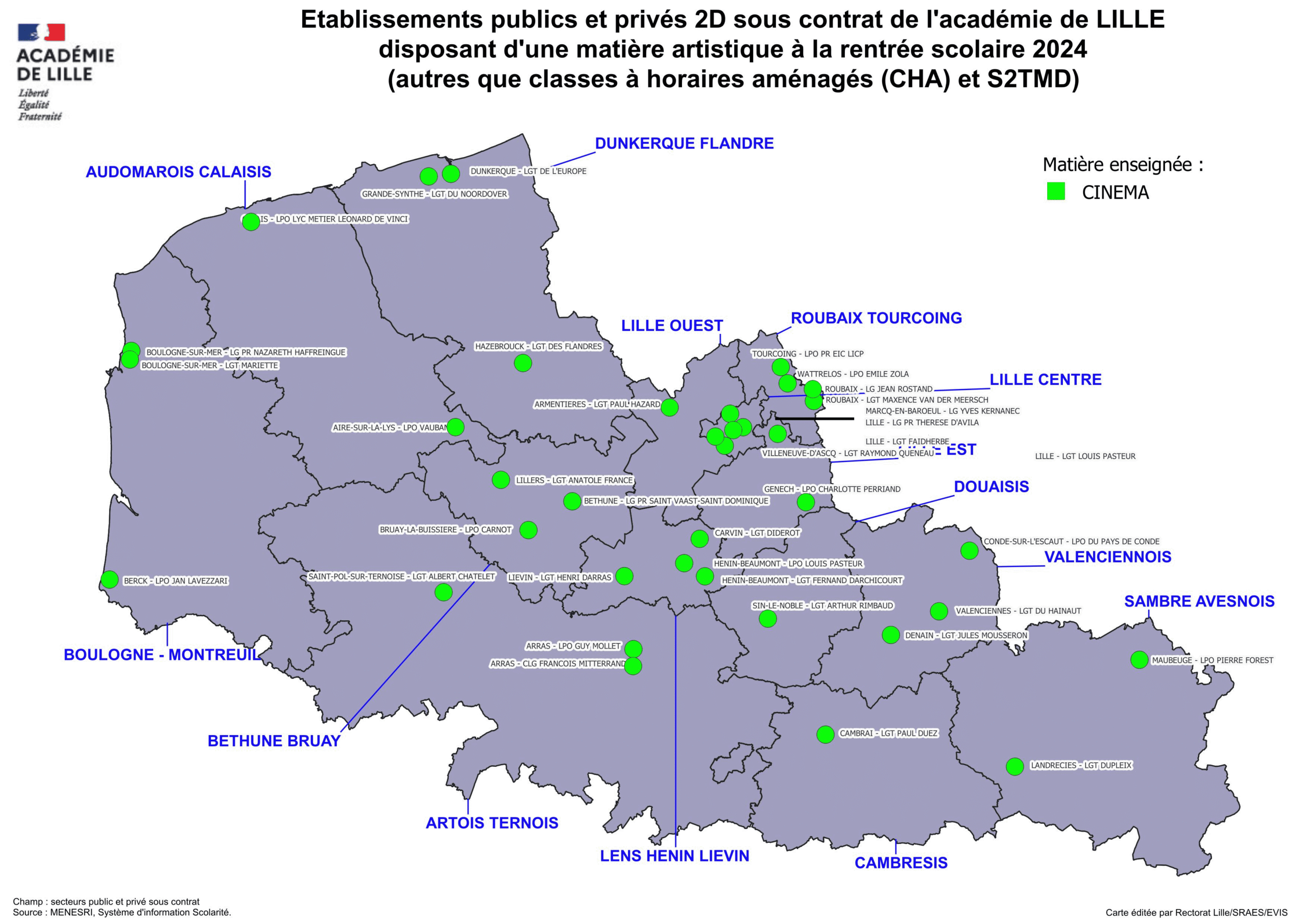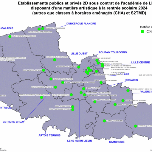 PubliĂ© 9 novembre 2025 đLes enseignements de CinĂ©ma Audio-visuel dans l’acadĂ©mie de Lille, cartographie.