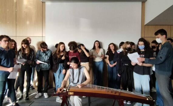 Jeudi 14 avril, tous les élèves qui étudient le chinois ainsi que leurs parents étaient invités à un événement culturel mettant la Chine à l’honneur. A cette occasion, une artiste franco-taiwanaise, Léane Dreyer, est venue jouer du Guzheng 古筝, un instrument traditionnel chinois.