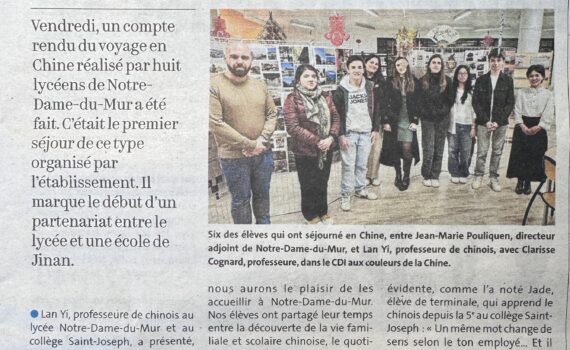 Pour la première fois le lycée Notre-Dame-du-Mur de Morlaix organisait un tel déplacement. Ce voyage s’est déroulé du 5 au 18 novembre 2024. Nous avons passé une première semaine à Jinan, où nous avons été chaleureusement accueillis par notre école partenaire, l’École expérimentale de langues étrangères de Jinan Xinhang. Les […]
