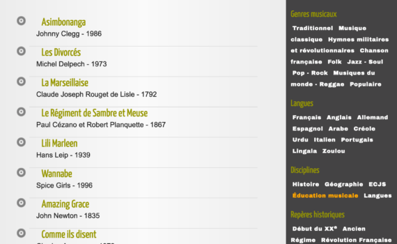 Les chroniques de Bertrand Dicale diffusées sur France Info à disposition des enseignants. Les chansons influent sur notre histoire, de La Marseillaise à Tomber la chemise , de Thriller à En passant par la Lorraine… Mais elles sont aussi le reflet de nos sociétés, qu’elles réagissent à un événement ou qu’elles se fassent […]