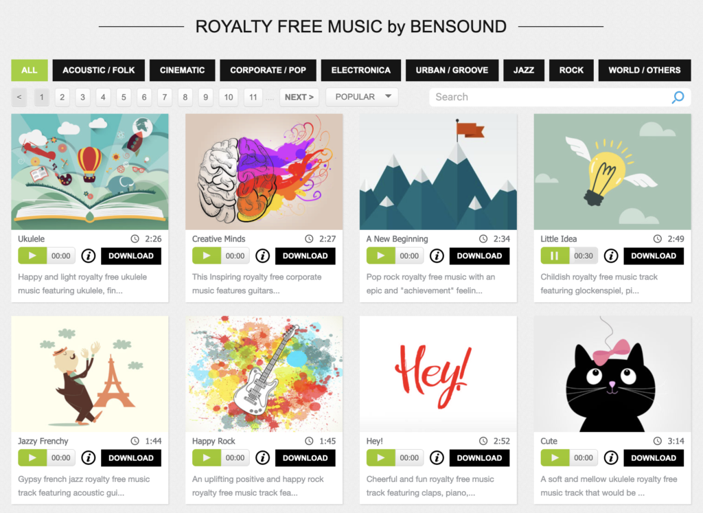 Banque de musiques d’ambiance qui propose un grand nombre de musiques gratuites.