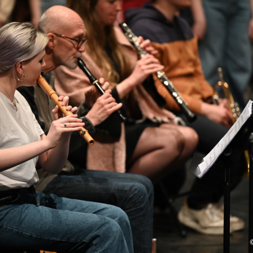 Se sont fédérés de nombreux acteurs : des professeurs de 14 collèges, 3 lycées, 2 écoles élémentaires, l’orchestre d’harmonie de Montigny-en-Gohelle, une structure culturelle patrimoniale et artistique, le 9-9bis et sa salle de musiques actuelles le Métaphone. Autour de l’interprétation d’une pièce composée spécialement pour voix d’adolescents et orchestre d’harmonie – Les Chemins de la Liberté de Jean-Philippe Vanbeselaere – ont été entendus des arrangements de chants actuels commandés à des compositeurs/arrangeurs locaux et reconnus. La direction des morceaux a été partagée entre tous les professeurs et le chef d’orchestre. De jeunes instrumentistes collégiens ou lycéens ont eu l’opportunité de se mêler aux instrumentistes adultes, mais aussi de jouer seuls en petit ensemble ou en combo rock. En vue de soutenir le dynamisme et la diversité de l’enseignement facultatif de chant choral, l’ensemble des partitions sera prochainement à la disposition des professeurs de l’académie sur ce site, onglet chant choral / Vocali.