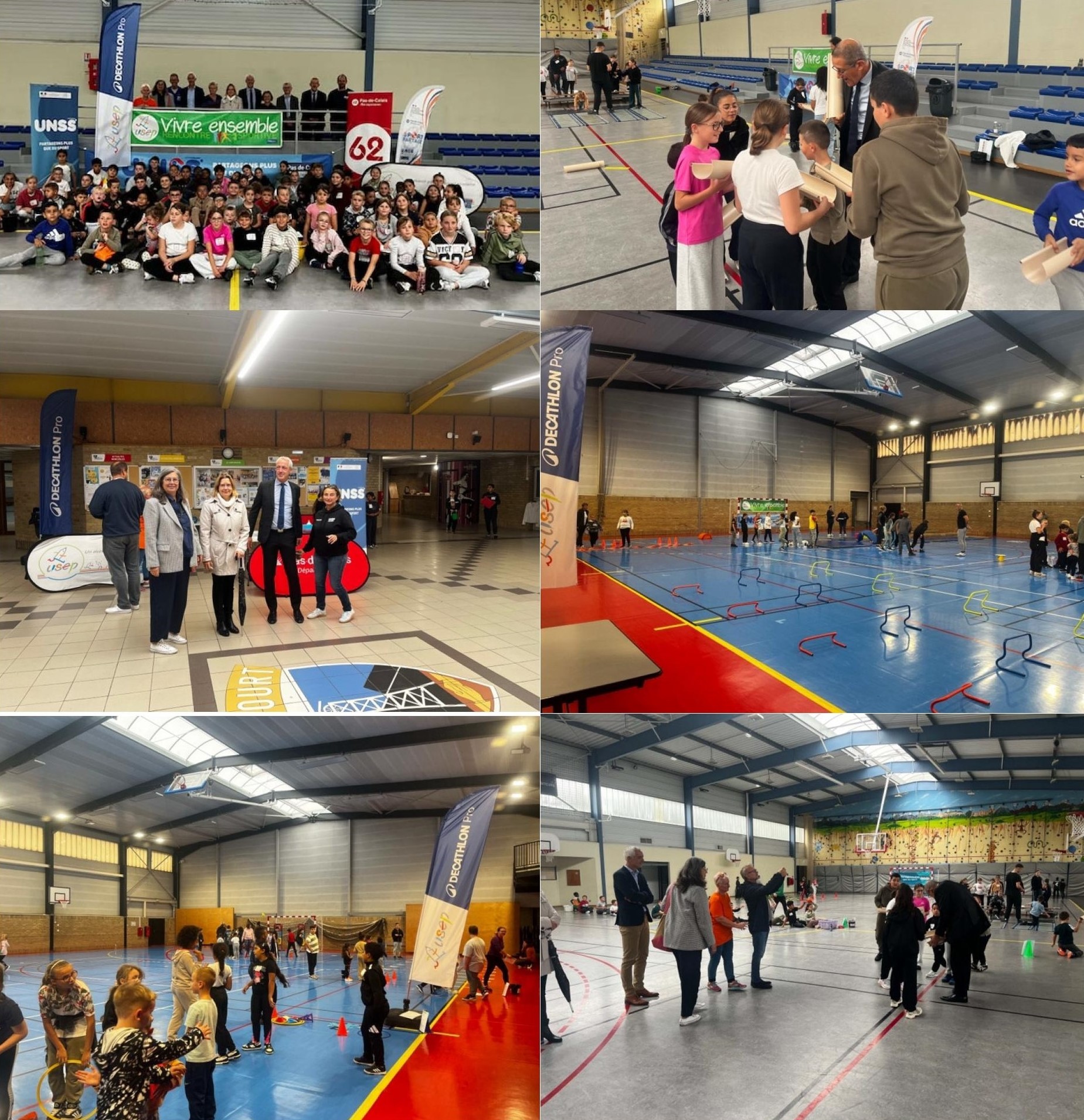 Cette matinée exceptionnelle s’est déroulée avec les collègues de l’UNSS62 et en présence de personnalités engagées dans le développement du sport scolaire : Monsieur Jean-Roger Ribaud, DASEN du Pas-de-Calais, Monsieur Vandenabeele, président de l’USEP nationale, Mesdames Bourgeois, principale du collège Henri Wallon, et Durnerin, IA-IPR EPS et DAAS de l’Académie.