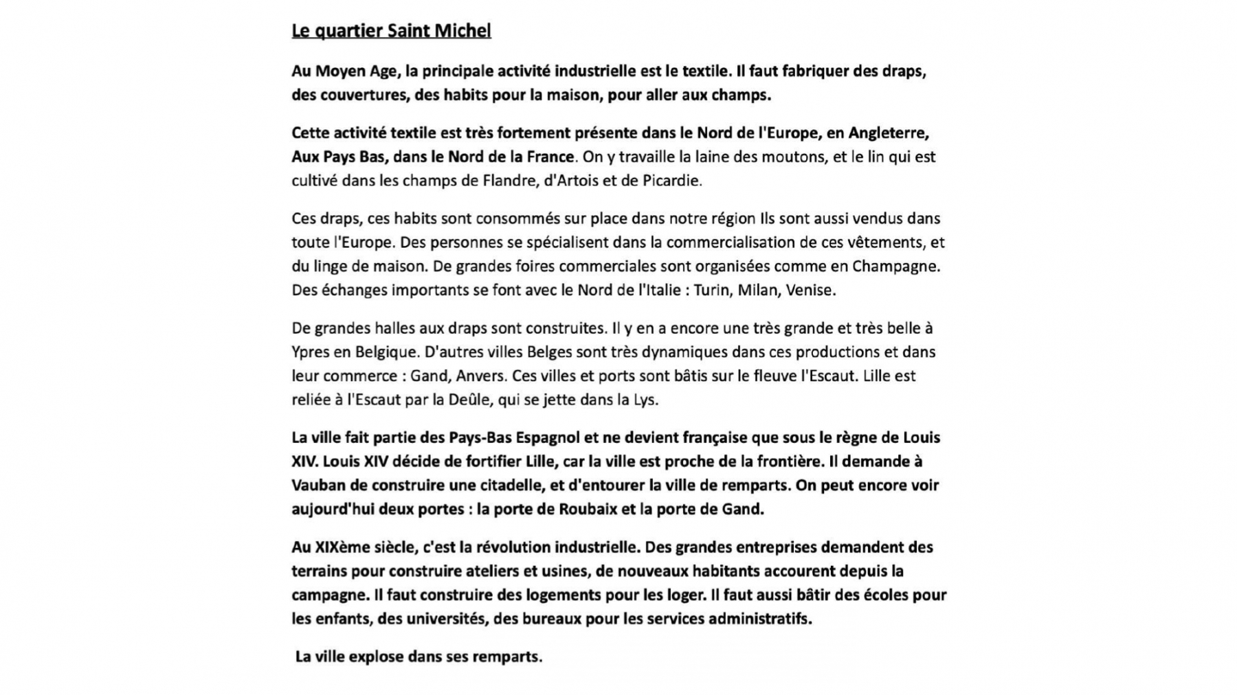 = des connaissances historiques et géographiques sont d’entrée de jeu incontournables (histoire de Lille : formes de la ville / éléments historiques – se repérer dans la cité).