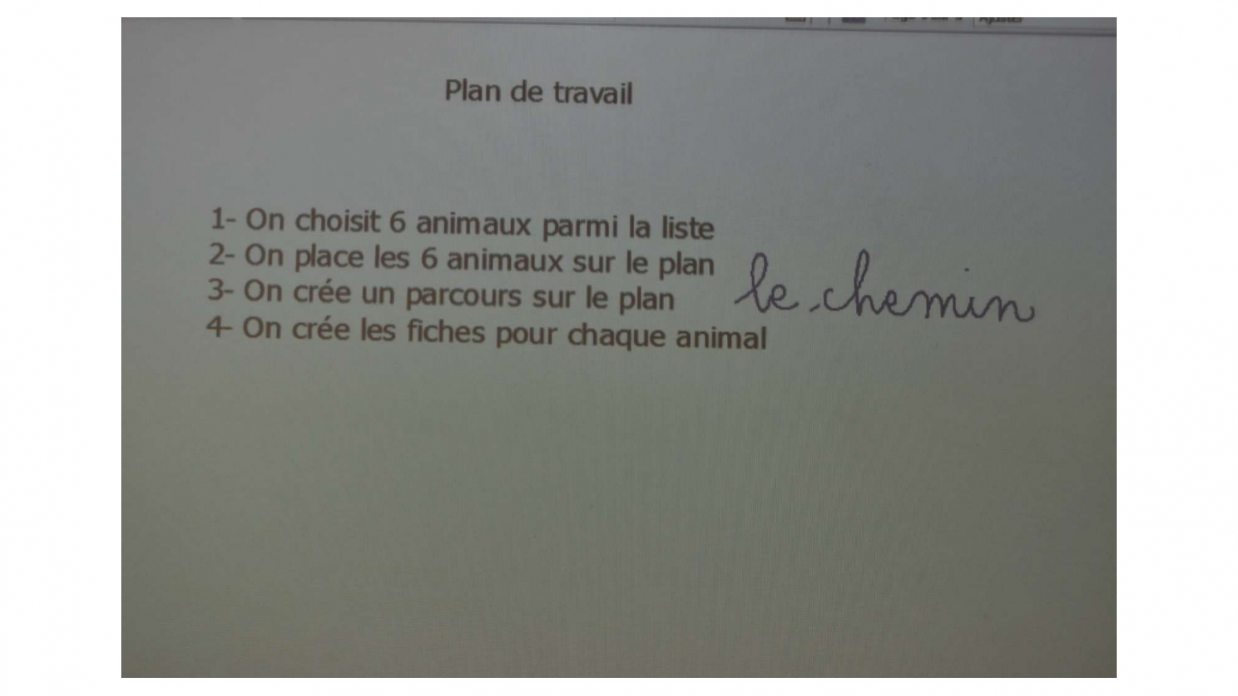 - Création de fiches de présentation des animaux pour l’élève « guide »