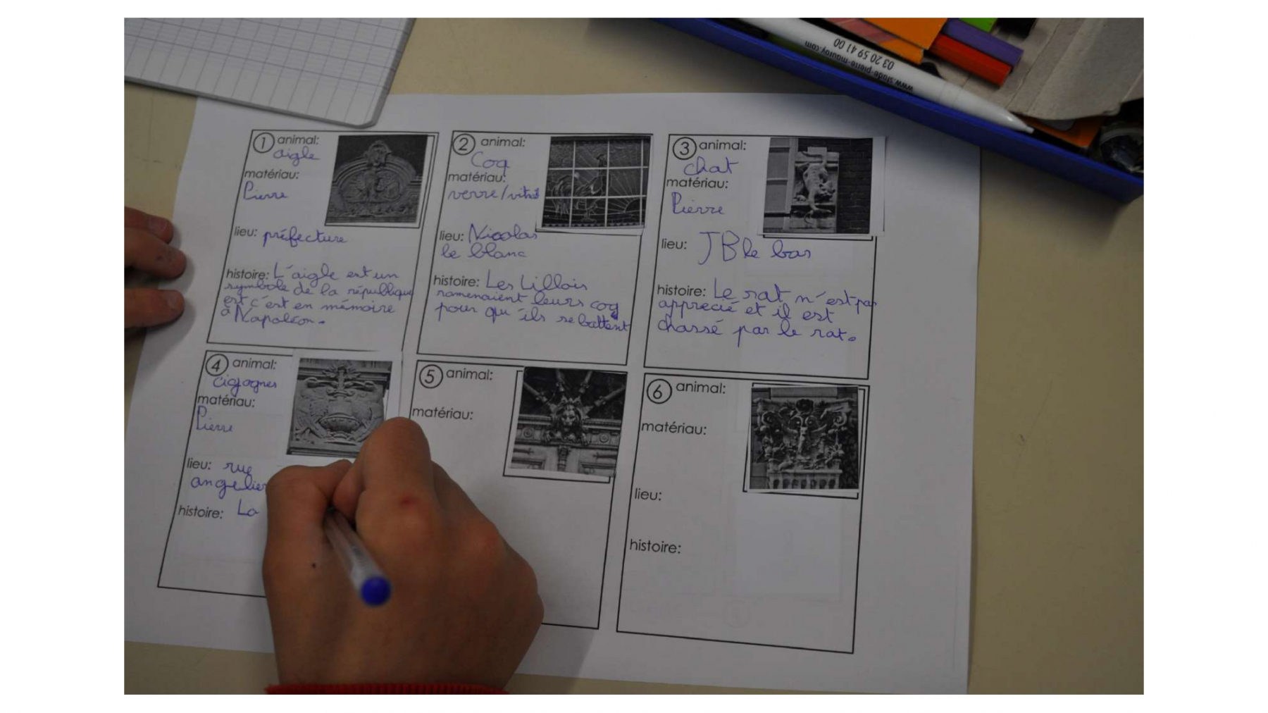 - Proposition aux élèves de regarder et de prendre en notes les figurations animales sur les façades entre leur logement et l’école.
