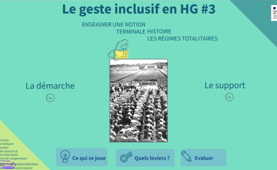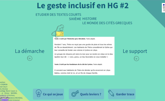 Le groupe de travail « gestes inclusifs » regroupe depuis quelques années une dizaine de professeurs de collège et de lycée autour de Bénédicte Micheau puis Géraldine Le Roy des Barres, chargées de mission Ecole Inclusive. Après un temps consacré à leur propre formation sur ces enjeux, les membres du […]