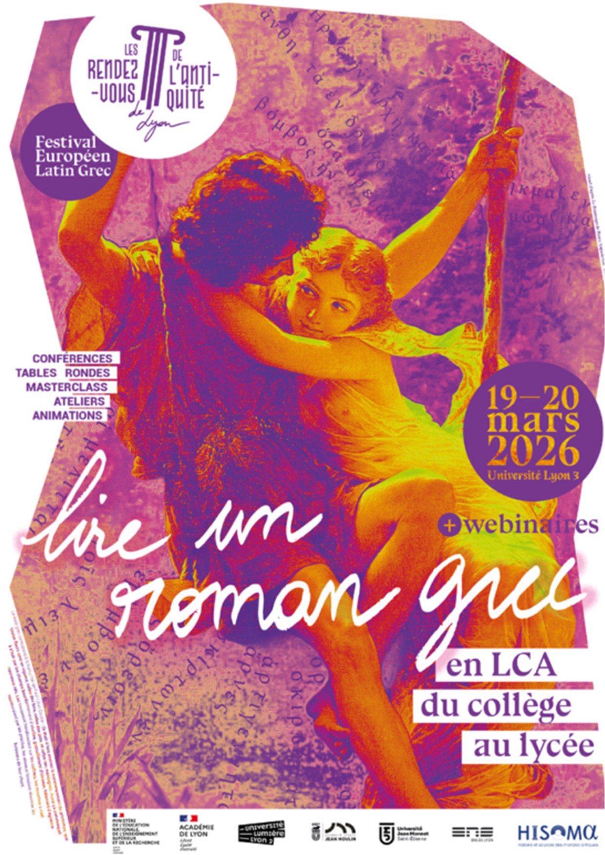 Le Plan national de formation 2026 des langues et cultures de l’Antiquité consacre cette année ses travaux à la redécouverte du genre littéraire qu’est le roman grec et latin, à ce genre narratif qui constitue l’une des premières expressions du genre romanesque en Occident et dont on connaît la fortune et le succès ultérieurs. Il se tiendra à Lyon du 11 mars au 6 mai, en visioconférences et en présentiel.