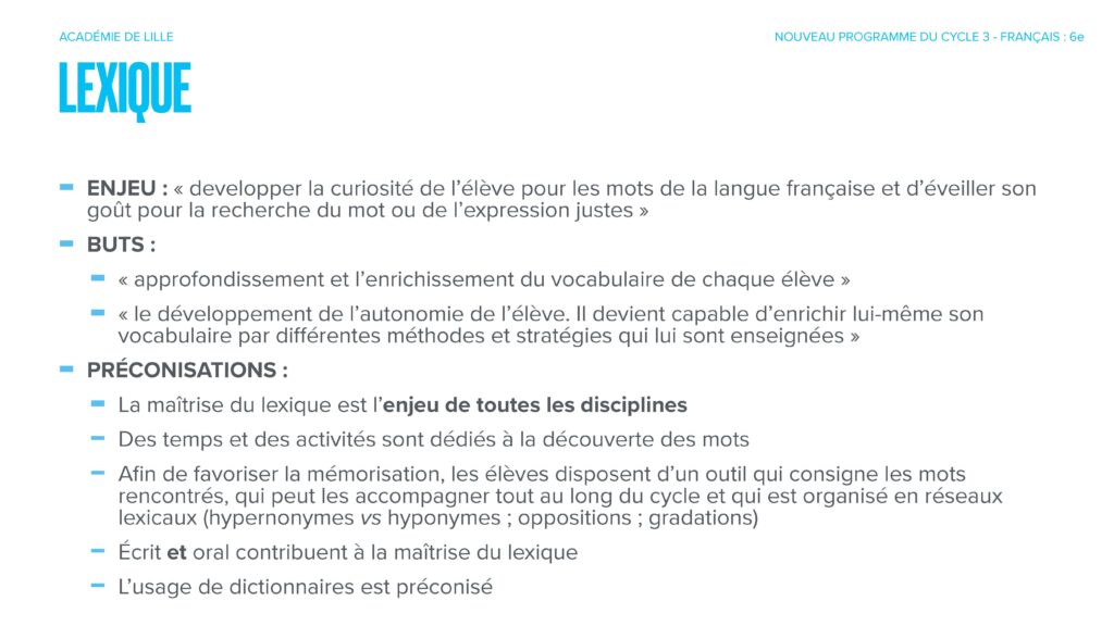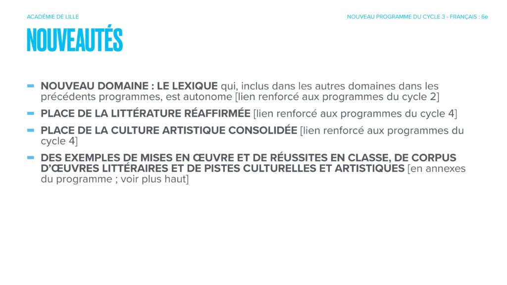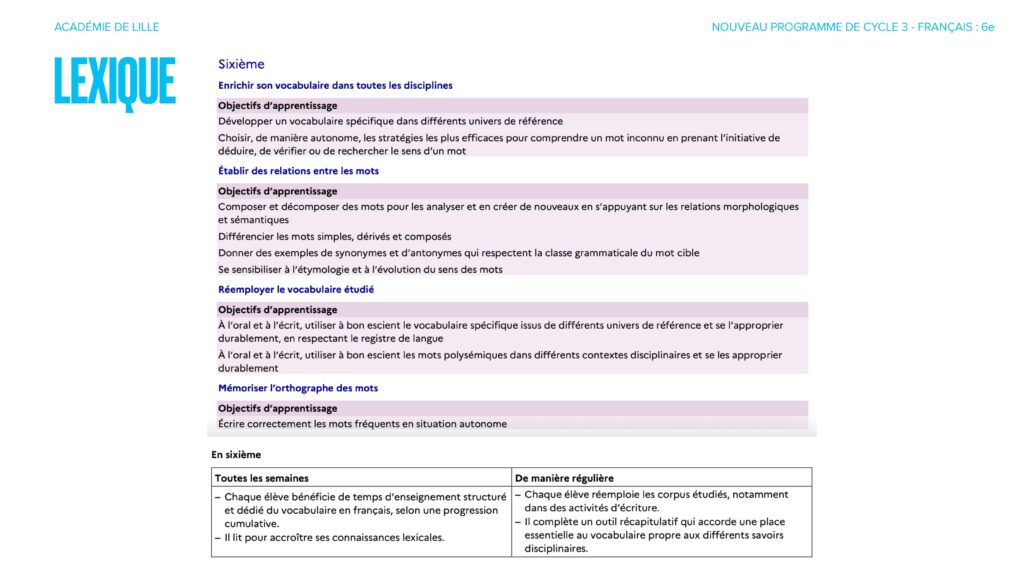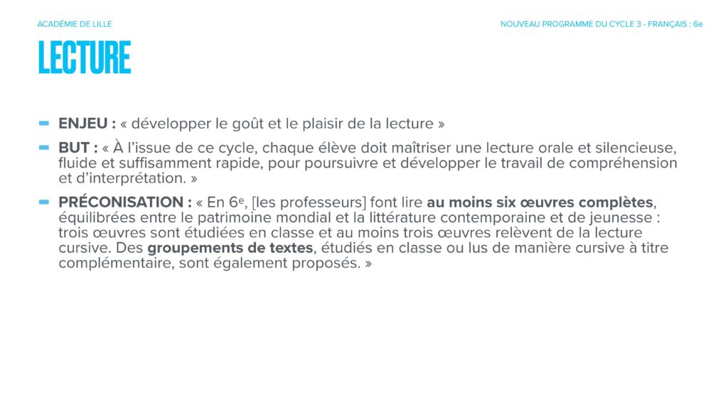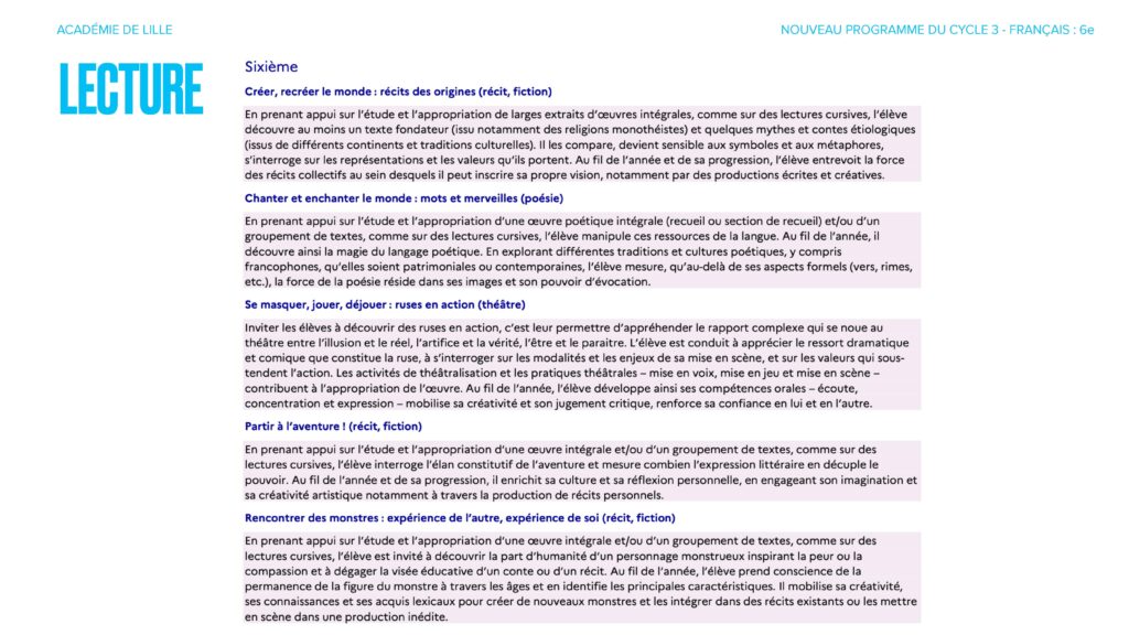 Document d’accompagnement des professeurs : Nouveau programme du cycle 3 Français 6e