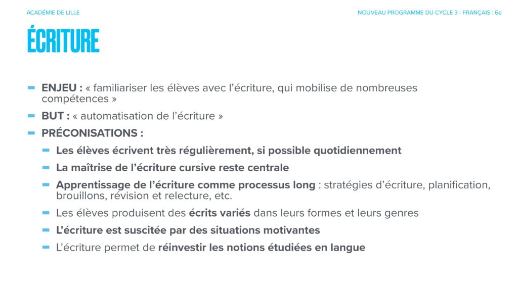 - Enseigner l’écriture : https://eduscol.education.fr/246/francais-cycle-3-enseigner-l-ecriture