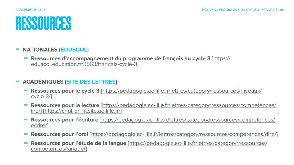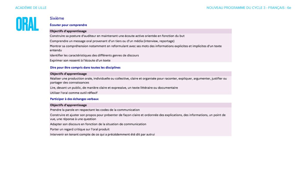 - Le langage oral : https://eduscol.education.fr/226/francais-cycle-3-le-langage-oral