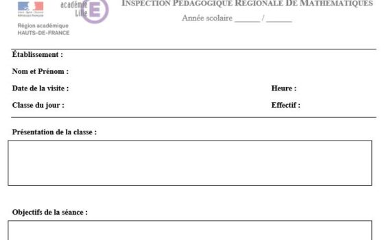Quelques jours avant l’inspection, l’inspecteur ou l’inspectrice vous communique par l’intermédiaire du chef d’établissement une version numérique de la fiche concernant la séance observée (à télécharger ci-dessous), à transmettre dans la mesure du possible par courrier électronique à l’inspecteur ou l’inspectrice. Par ailleurs, nous vous demandons de mettre à notre […]