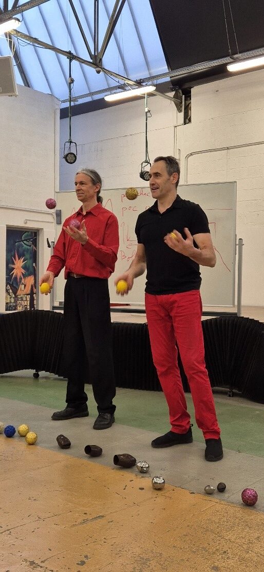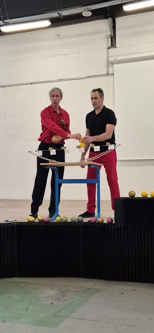Le spectacle a exploré le lien entre les mathématiques, la modélisation et l’informatique à travers la jonglerie.