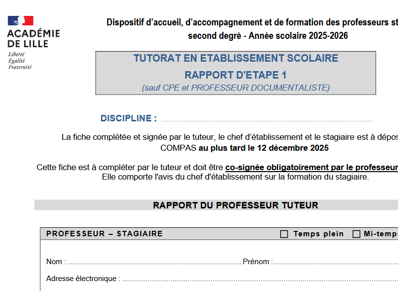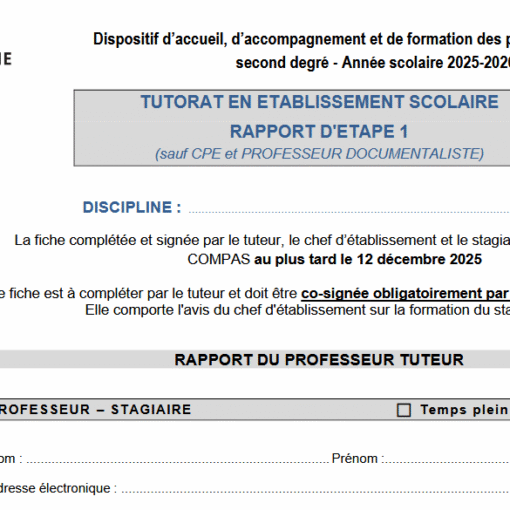 Grilles d’observation et rapport vierge au format modifiable pour les tuteurs des professeurs stagiaires