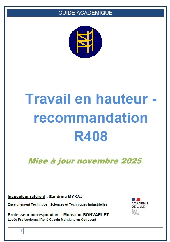 - préconisations relatives à la mise en œuvre des formations « travail en hauteur » pour les enseignants et les élèves;
