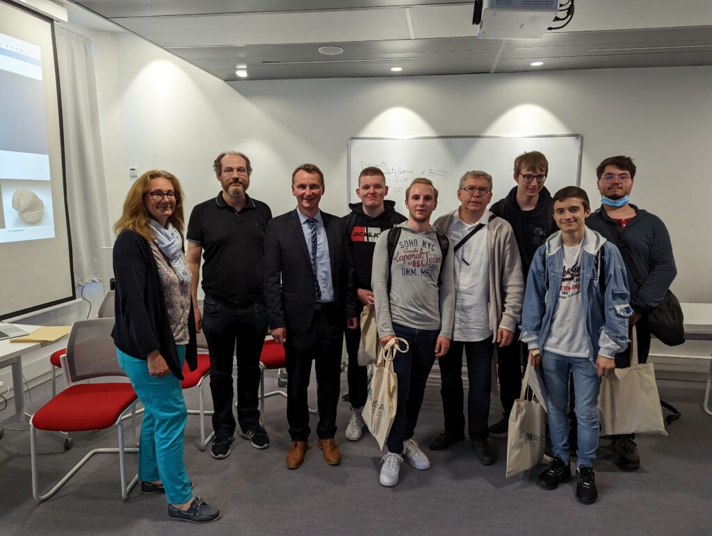 Sur les différentes photos vous pourrez entre autres apercevoir Clarisse Dhaenens (directrice de CRIStAL), Régis Leclercq (IA-IPR de mathématiques et NSI, Académie de Lille), Thomas Vantroy (maître de conférences à l’Université de Lille, membre du jury) et bien entendu des lauréats et candidats accompagnés de leurs enseignants.