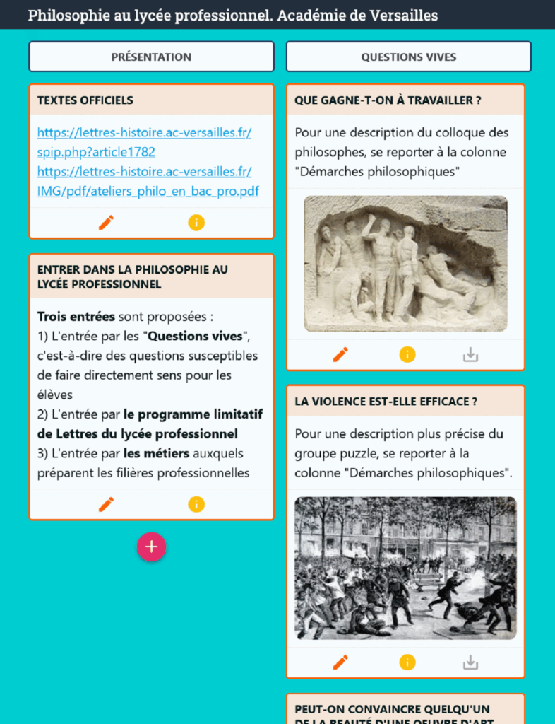 Dans le cadre de la transformation de la voie professionnelle, il était possible de proposer des ateliers de philosophie en terminale professionnelle depuis 2021. A compter de la rentrée 2024, la philosophie peut être présente en terminale professionnelle sous la forme d’un enseignement optionnel de philosophie. Les collègues intéressés par cette démarche sont invités à se rapprocher de l’inspection de philosophie pour plus de précisions.