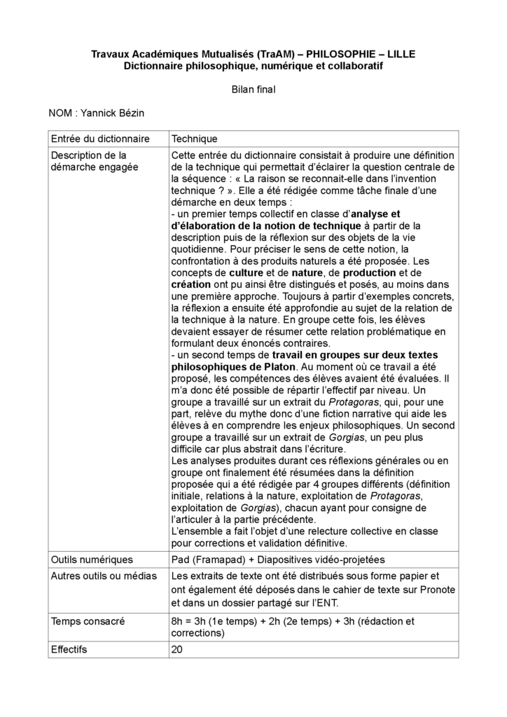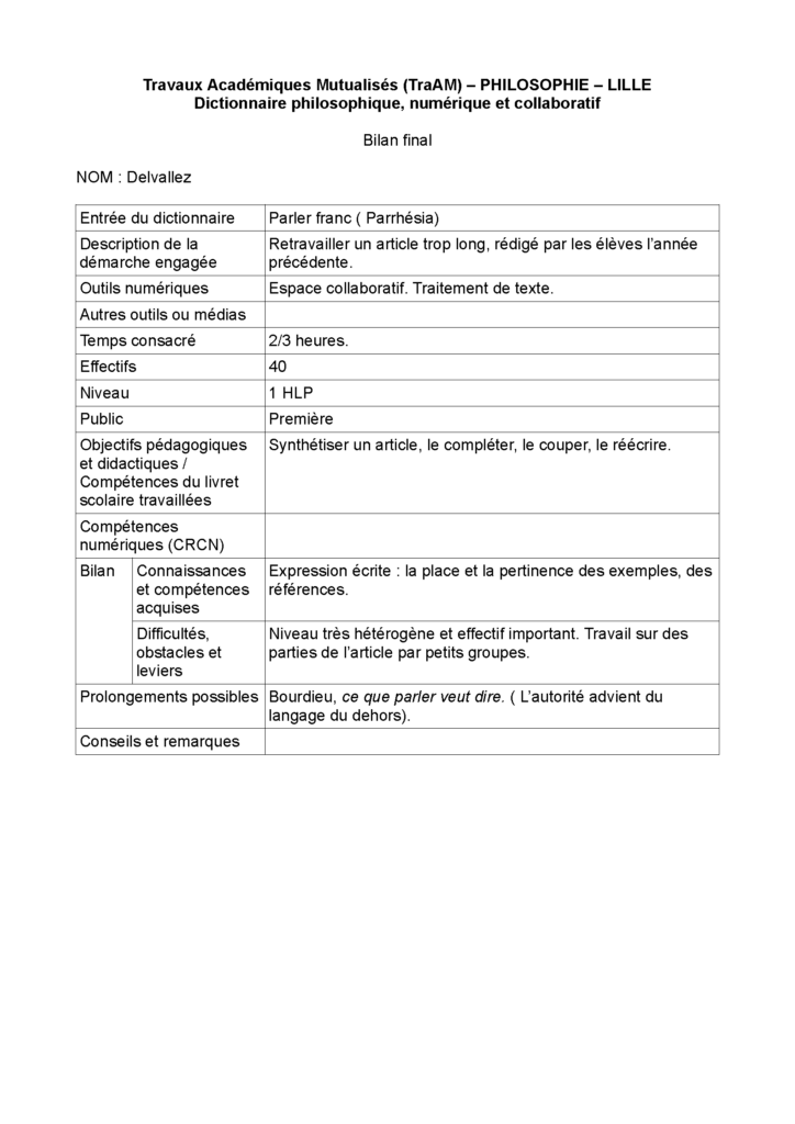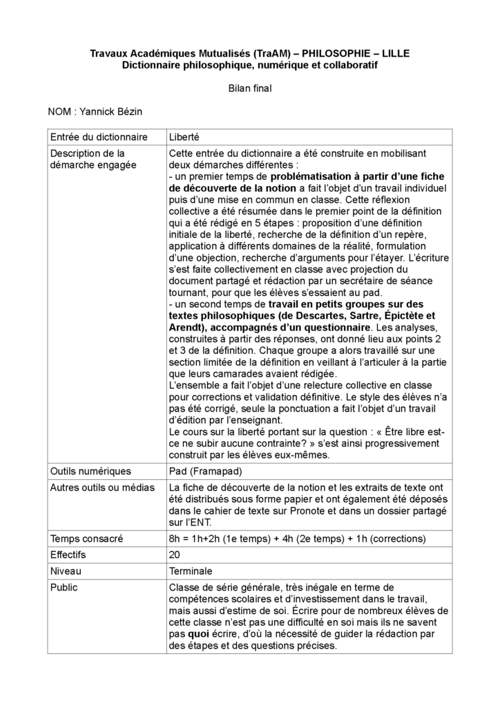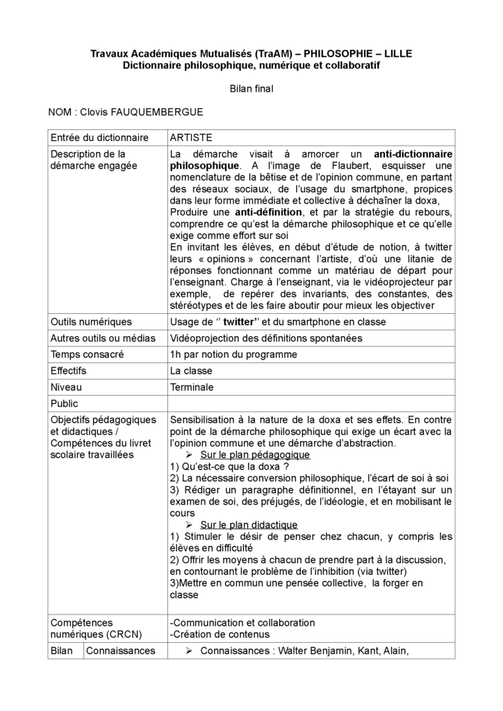 Contribution qui s’alimente des thématiques annuelles proposées au niveau national et qui constitue un dictionnaire philosophique, numérique et collaboratif. Quelques entrées :