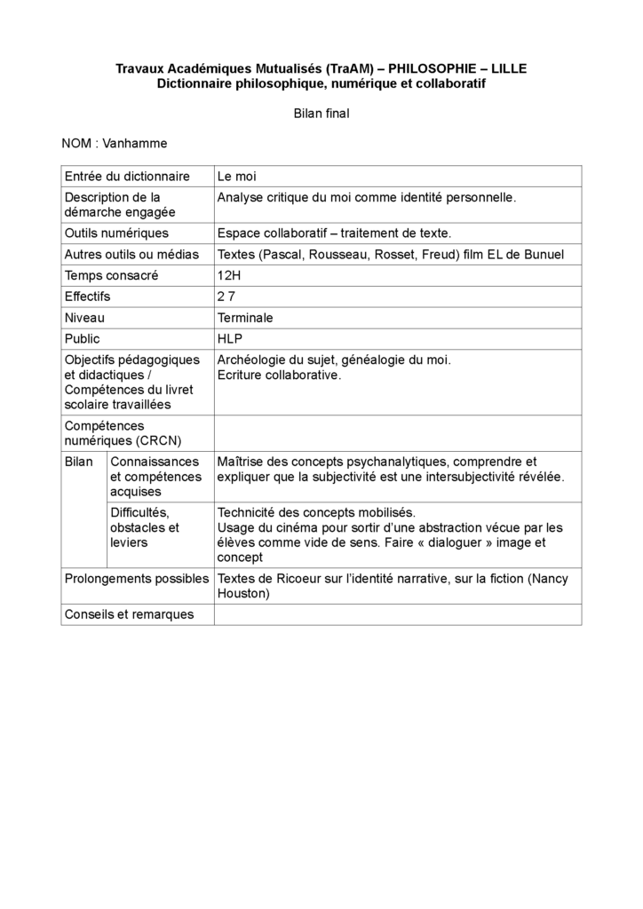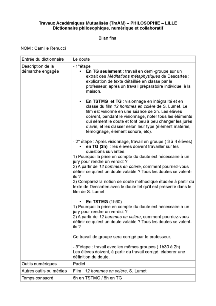 Exemple de contribution des TRAvaux Académiques Mutualisés de Lille :