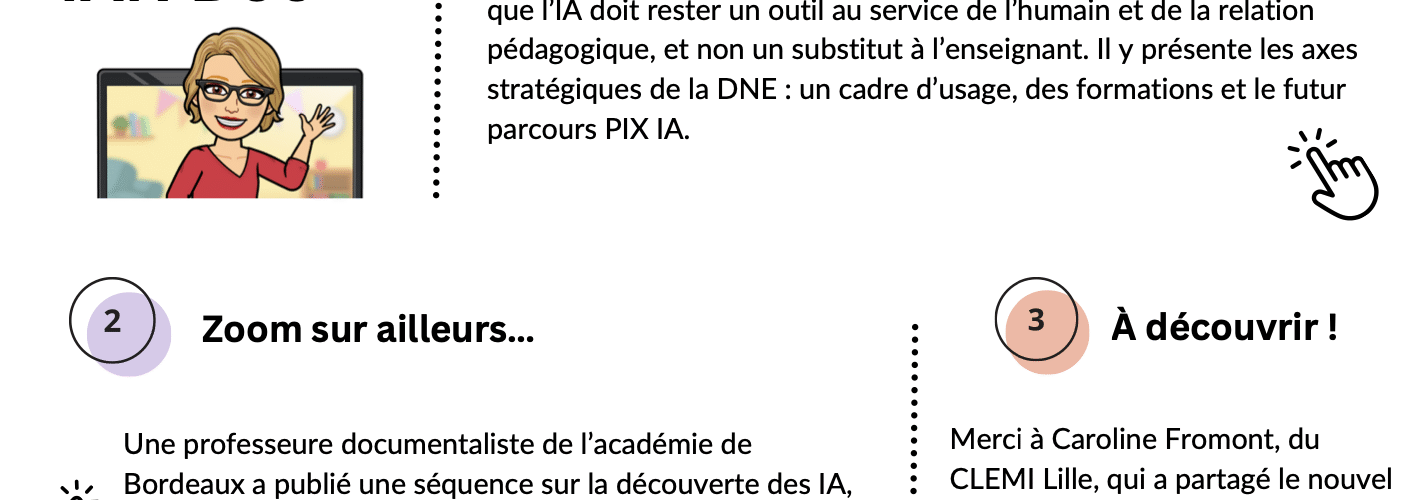 Dans ce numéro de Lille Doc Tice, on découvre des séances pédagogiques sur l’IA et sur l’information scientifique, une expo sur l’IA par Cartooning for Peace, la plateforme MétropédIA ou encore Lumo, une IA européenne respectueuse des… Lire la suite : LilleDocTice 11.2025 - L’IA pour inviter les élèves à l’écriture et à la lecture critique d’images (2)
