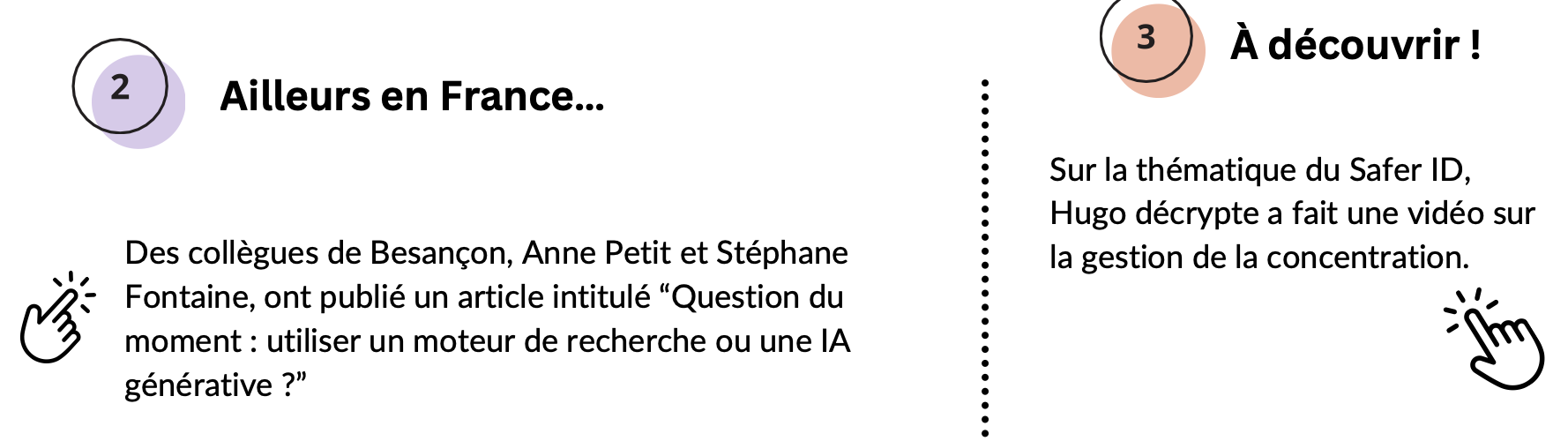 Dans le cadre des TraAM Documentation 2024-2025, l’académie de Lille a produit avec l’académie de Créteil un article réflexif inter-académique, fruit du travail d’Audrey Démonière-Rouvel, Marie-Cécile Michallet et Marine Delliaux. Cet article porte sur la pédagogie… Lire la suite : Recherche d’information et IAG : vers la conscientisation des élèves