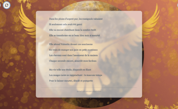 Elora Chotteau, professeure documentaliste au lycée Henri Wallon, de Valenciennes, nous partage un projet destiné aux élèves de seconde ayant choisi l’option “humanité numérique”. Plusieurs horaires sont proposés aux élèves, avec des enseignants différents. L’horaire qui a accueilli ce projet est celui du mercredi midi, avec le professeur de NSI-SNT Mathieu Nicolas, et la professeure documentaliste Elora Chotteau. Contexte : Devant l’intérêt des élèves pour la littérature et la poésie, il a été décidé de faire créer un générateur de poèmes aléatoires à la façon de Raymond Queneau, dans ses Cent mille milliards de poèmes. Public : élèves de seconde […]