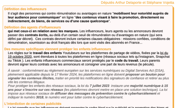 Isabelle Pérard, professeure documentaliste et formatrice académique a élaboré ce support pour une mise à jour des connaissances sur le sujet : Autres ressources : LINOT, Laure. Les influenceurs face à la loi. [en ligne]. Disponible sur : https://www.lumni.fr/video/les-influenceurs-face-a-la-loi. [consulté le 23/11/2024].