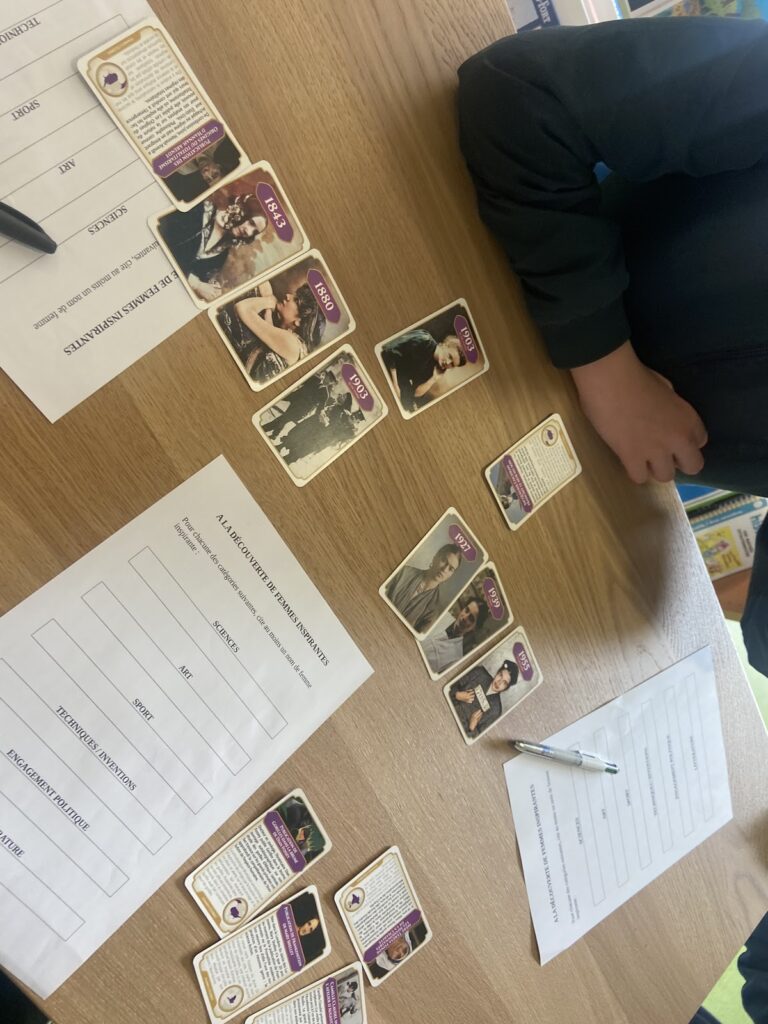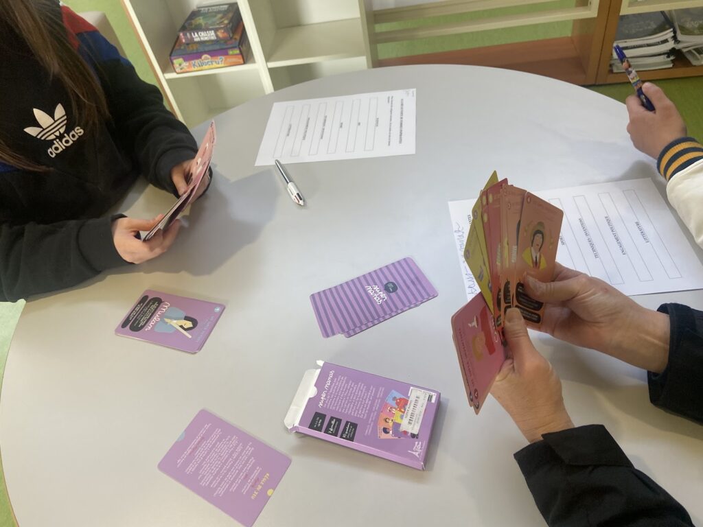 → Les jeux sont répartis sur 3 tables du CDI : les élèves tournent par groupes sur les 3 jeux, munis d’une fiche récapitulative sur laquelle ils notent les noms des femmes en fonction de leur domaine de compétences.