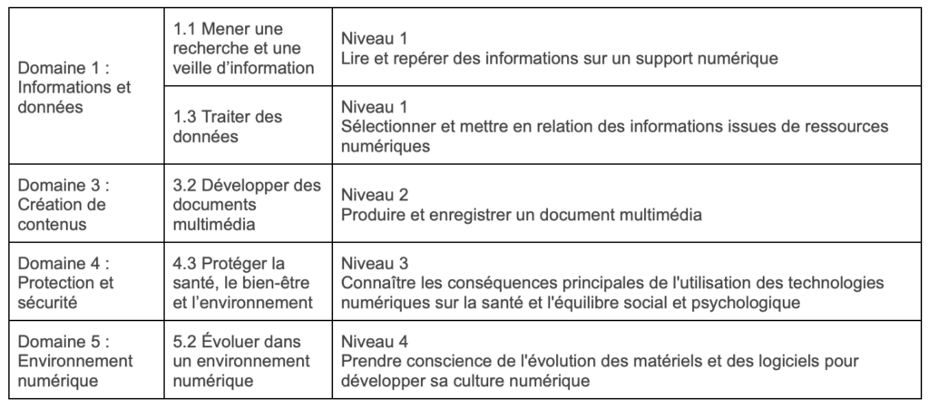 Compétences (cliquez sur les tableaux pour les agrandir) :