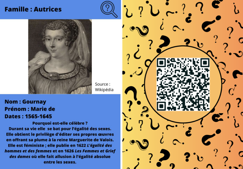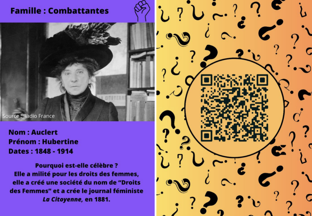 Le projet est motivant tant pour les élèves que pour les enseignantes : nous craignions de ne pas avoir assez de femmes pour réaliser le jeu de 42 cartes… Nous pourrions réaliser aujourd’hui un jeu des 9 familles ! Il nous a concrètement interrogées sur la place de femmes dans une Histoire écrite par les hommes… La réalité d’un engagement féministe volontaire, conscient et / ou revendiqué chez certaines personnalités est aussi un sujet de débat intéressant avec les élèves.