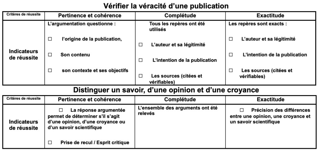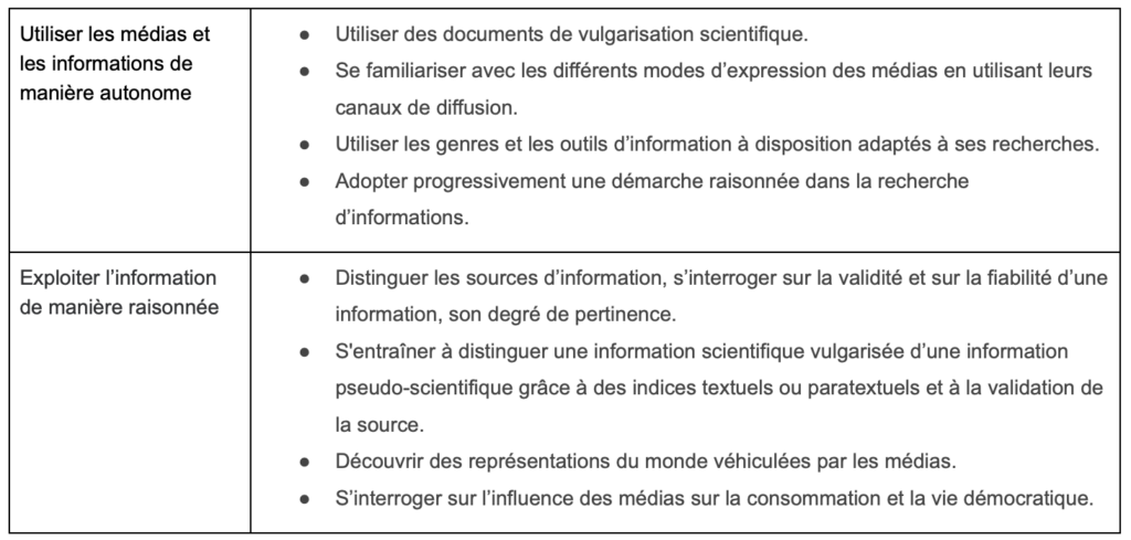 - Amener les élèves à réfléchir sur les critères de scientificité d’une source, et, en conséquence, travailler sur les différences entre une opinion, un savoir scientifique et une croyance. Les amener à développer une culture des sources scientifiques.