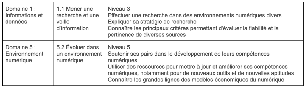 Compétences (cliquez sur les tableaux pour les agrandir) :
