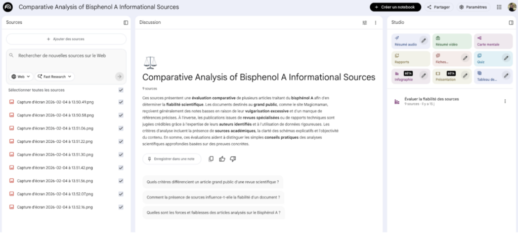 Les élèves présentent ensuite à l’oral leur publication choisie et leurs conclusions tirées à partir du fiabilitomètre. Il a été intéressant de constater que les sources fiables étaient souvent les mêmes (INSERM, ANSES, leseclairages.cancer.fr, réseau NACRE, sante.fr …). Ainsi, cela permet une acculturation des élèves qui commencent à connaître quelques sources scientifiques fiables.