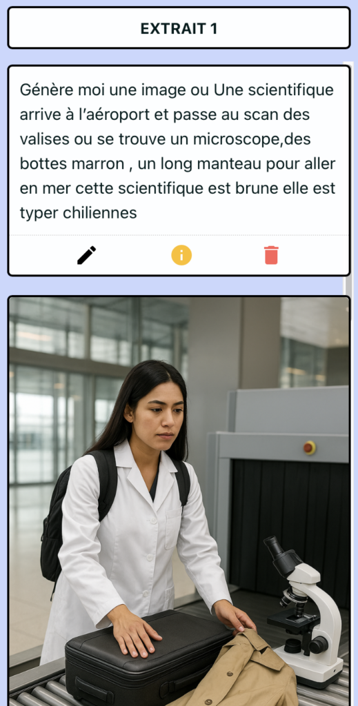 Ce projet s’inscrit dans le cadre des TRAAM documentation 2025-2026, il amène les élèves à identifier l’essentiel d’un chapitre, à le reformuler sous forme de prompt, puis à le traduire en production visuelle. Cette transformation engage des compétences info-documentaires telles que la sélection et la reformulation d’informations. Le recours à l’intelligence artificielle s’inscrit ici comme un outil au service de la compréhension et de la production de connaissances. Le dispositif repose sur une pédagogie active favorisant l’autonomie et l’implication des élèves.