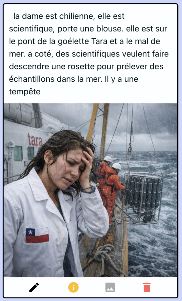 Heure 2 : fin de lecture du chapitre si besoin. Rédaction du prompt sur un digipad, génération de l’image par l’enseignante. Critique de l’image. Génération d’une autre image si besoin. Bilan.