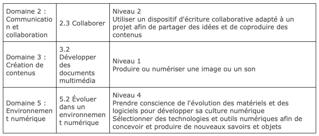 Compétences (cliquez sur les tableaux pour les agrandir) :