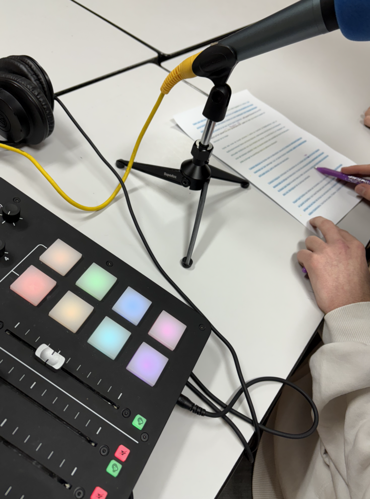 - Enregistrement audio du conte : lecture à voix haute avec le matériel radio. Cette étape est primordiale : les élèves ont réalisé certaines incohérences ou un vocabulaire pas toujours adapté. Un temps plus long aurait permis un entraînement et une meilleure qualité de lecture. Il pourrait aussi être envisagé de faire un habillage sonore des pistes enregistrées.