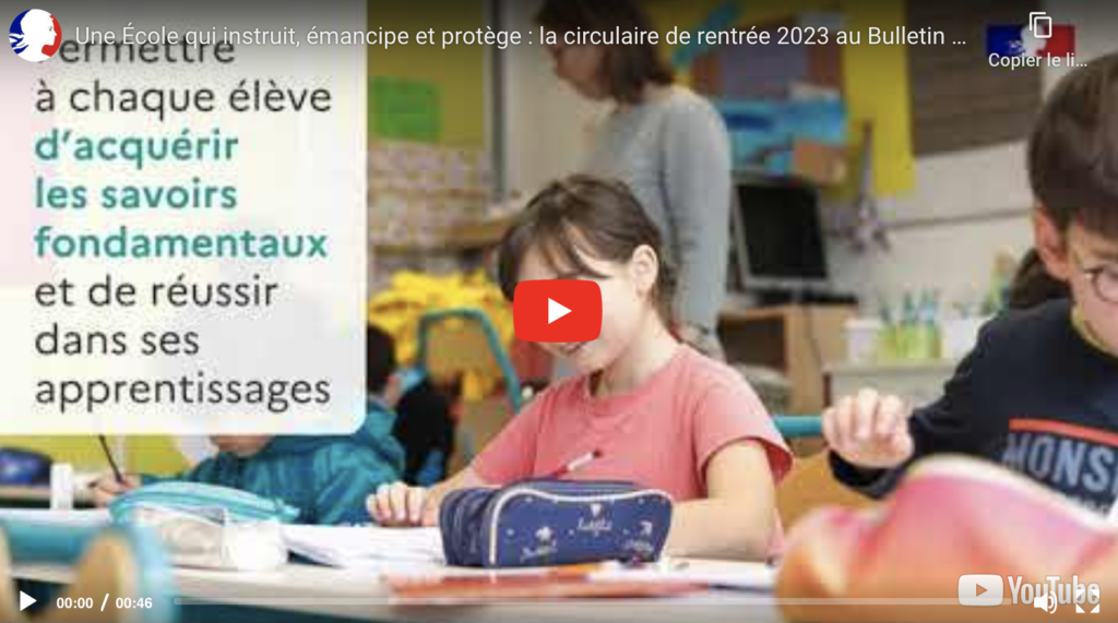 Une École qui instruit, émancipe et protège : la circulaire de rentrée 2023 au Bulletin officiel.