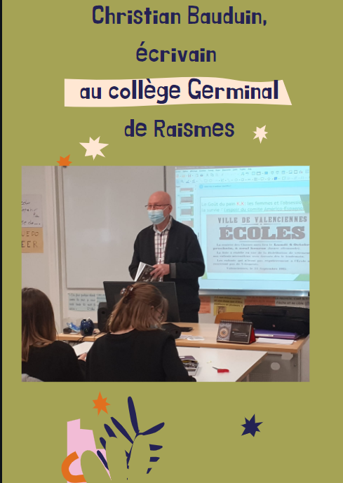 Corine Socha, professeure documentaliste au collège Germinal de Raismes, a organisé une rencontre littéraire entre ses élèves de 3ème et Christian Bauduin, écrivain. Les élèves de 3ème ont pu rencontrer l’auteur, traitant de la situation des femmes dans le Valenciennois durant la 1ère Guerre mondiale.