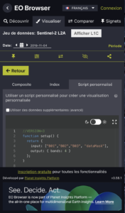 Les Evalscripts sont des textes en JavaScript qui permettent de personnaliser la façon dont les images satellite sont affichées et analysées. Voici comment utiliser les Evalscripts dans EO Browser :