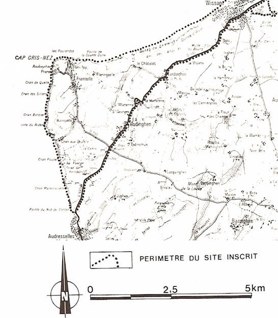 Le Cap Gris-Nez fait partie, avec le Cap Blanc-Nez du Grand Site National des Deux Caps, classé depuis 1987. L’ensemble se déroule sur une façade maritime de 25 kilomètres du département du Pas-de-Calais. Il est profondément marqué par de grands secteurs de falaises, falaise jurassique pour le Gris-Nez (altitude maximale du plateau : 50 mètres) et falaise crétacée pour le Blanc-Nez (altitude 131 mètres), séparées par la baie sableuse de Wissant.