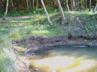 Il peut être complété par l’examen de certaines berges non consolidées et en train de subir un glissement de terrain vers l’étang. (modelé du paysage en relation avec les propriétés des roches).