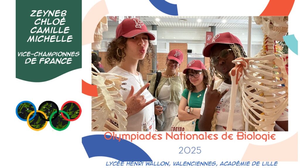 Camille, Chloé, Michelle et Zeyneb du lycée Henri Wallon à Valenciennes sont donc vice-championnes de France de biologie 2025 devant 29 autres équipes représentant l’ensemble des académies et des lycées français à l’étranger.