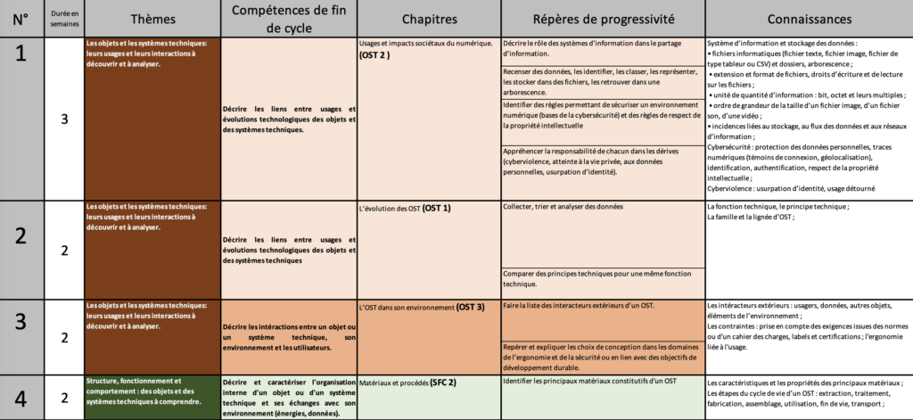 Vous trouverez ci-dessous, un exemple de progression pour l’année de 5°. Pour chaque thème, vous trouverez des propositions de séquences issues du RNR.